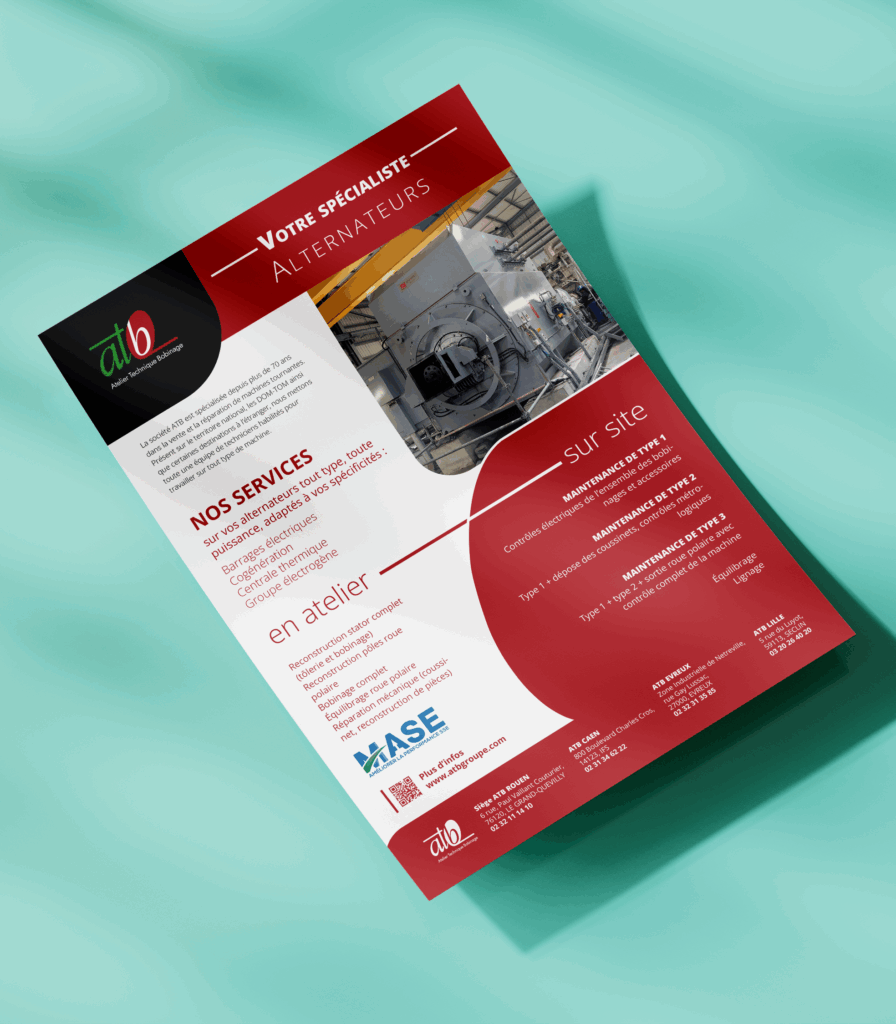 Kakemono – Services ATB pour alternateurs Conception d’un kakemono technique pour l’Atelier Technique de Bobinage (ATB – Seine-Maritime, 76) présentant